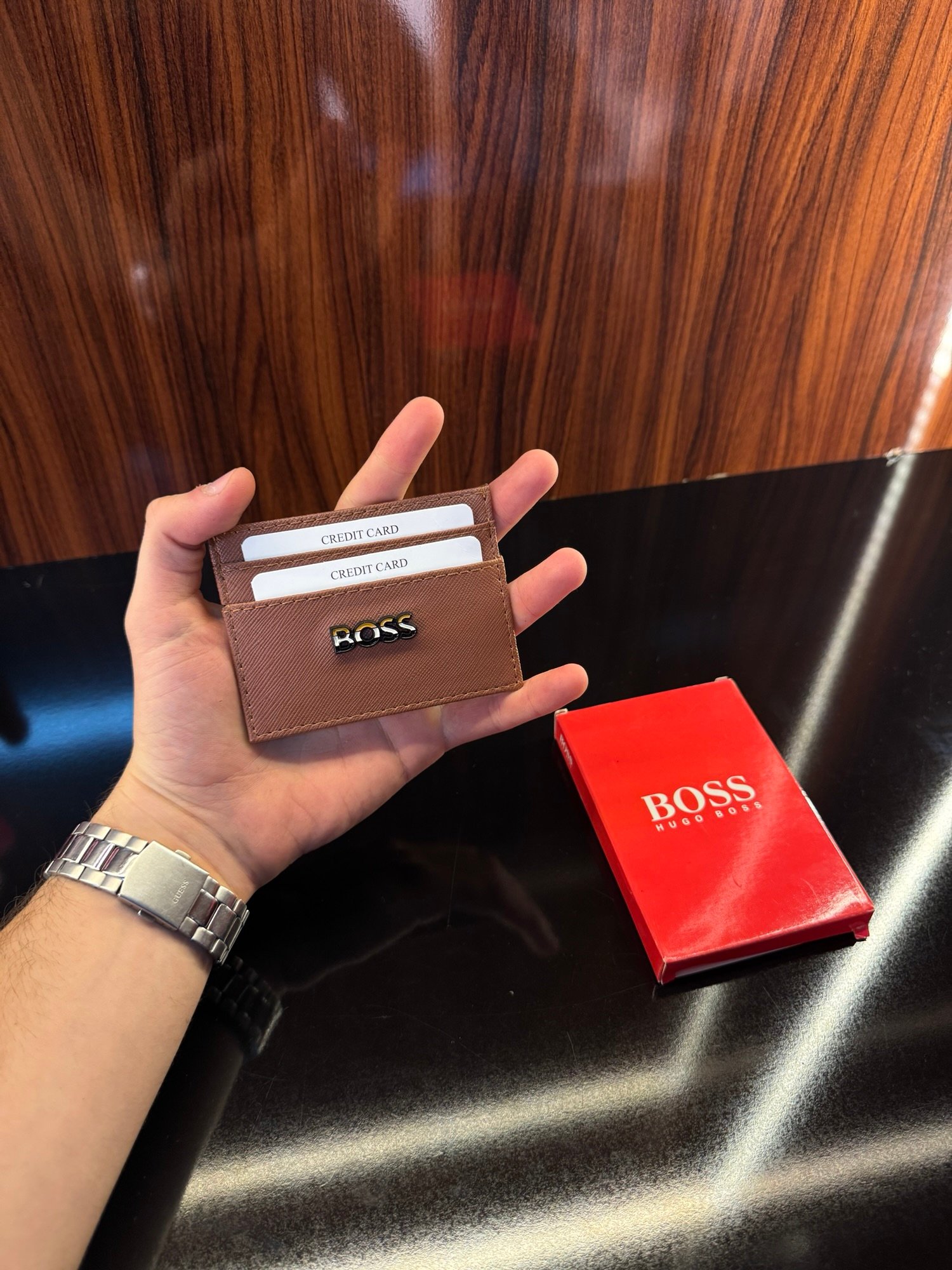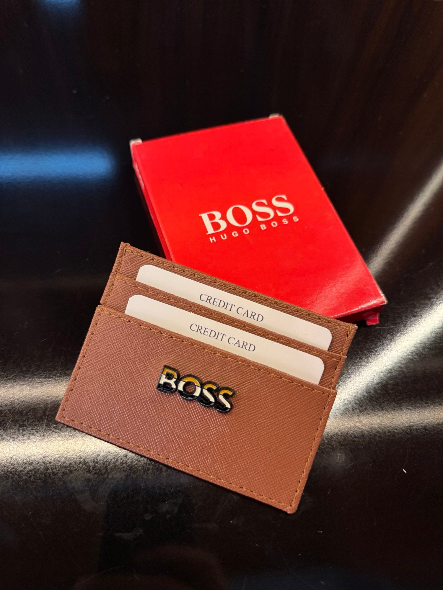 Hugo Boss Deri Kartlık | Kahverengi